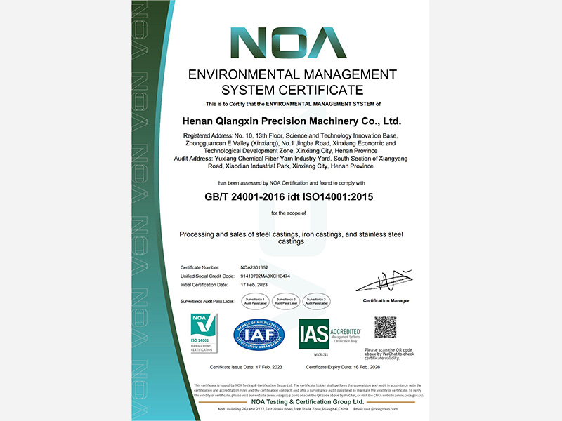 環境管理體系認證證書
